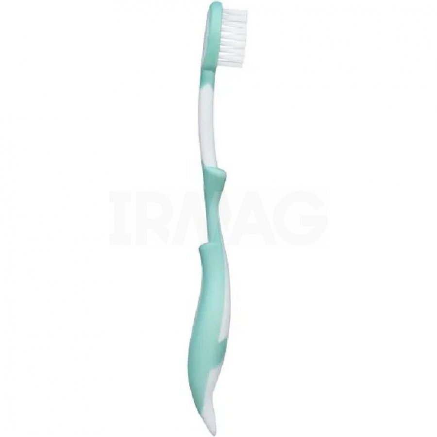 NATUSANA детская зубная щетка для тщательной и безопасной чистки полости рта. Деликатно очищает эмаль и межзубные промежутки от бактериального зубного налета. Мягкие щетинки бережно массируют десны. Прорезиненная закругленная головка зубной щетки не травмирует мягкие ткани полости рта ребенка и обеспечивает комфортную чистку зубов. Нескользящая эргономичная ручка из мягкой резины позволяет контролировать давление щетины на зубы во время чистки.