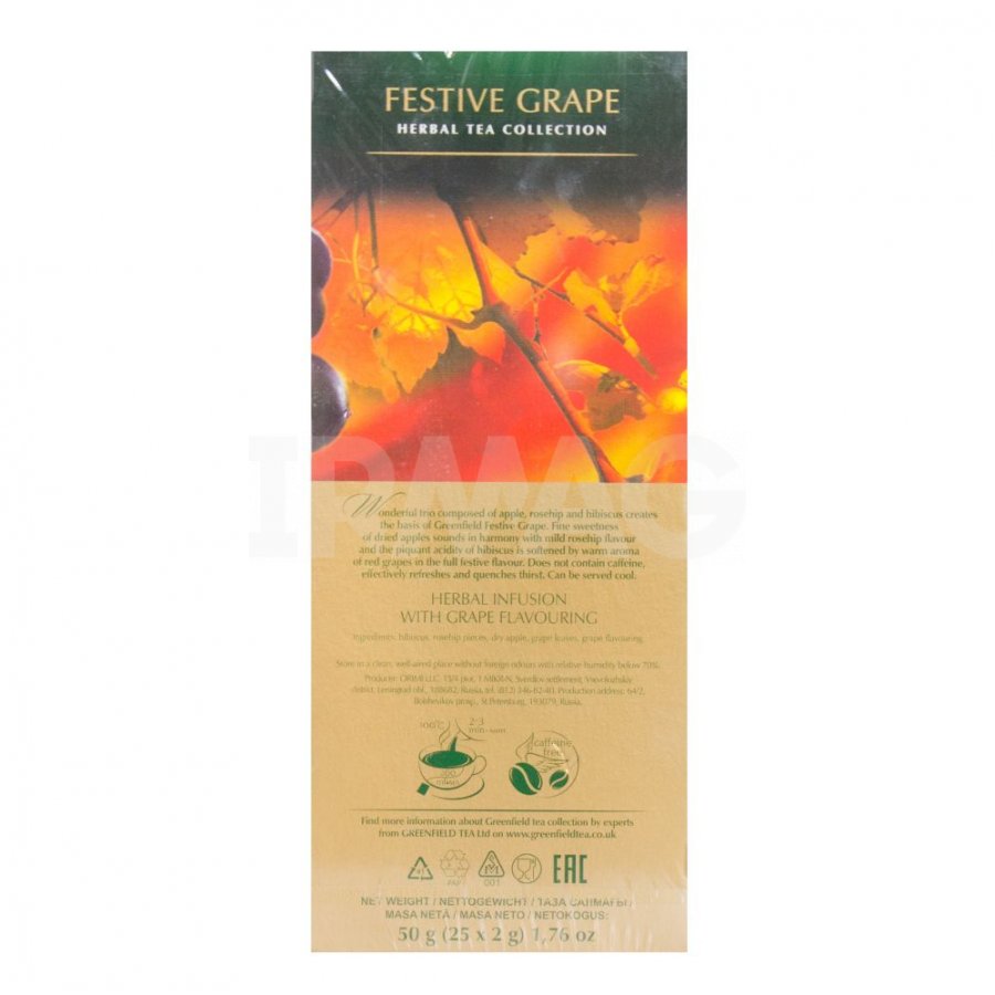 Великолепное трио – яблоко, шиповник и гибискус – составляет основу Greenfield Festive Grape. Тонкая сладость сушеных яблок звучит в унисон с мягким вкусом шиповника, а пикантную кислинку гибискуса в насыщенном праздничном вкусе оттеняет теплый аромат красного винограда. Не содержит кофеина, прекрасно освежат и утоляет жажду. Можно употреблять охлажденным.