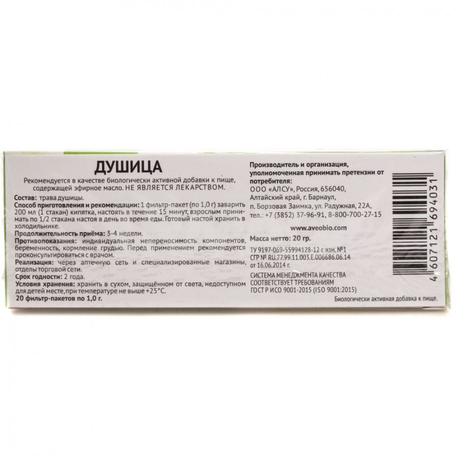 «Душица» серия «Алтайские травы» рекомендуется в качестве биологически активной добавки к пище, содержащей эфирные масла.