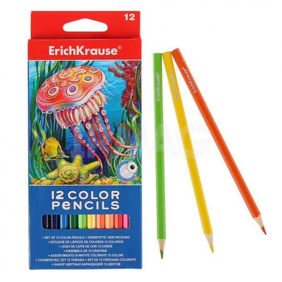 Карандаши 12 цветов Erich Krause, шестигранные, деревянные, грифель 3мм, европодвес