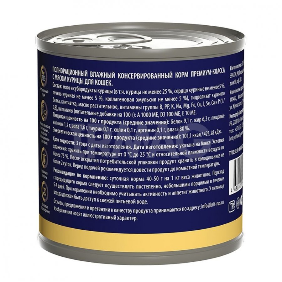 Консервы для кошек Brit Premium с мясом Курицы (200 г)