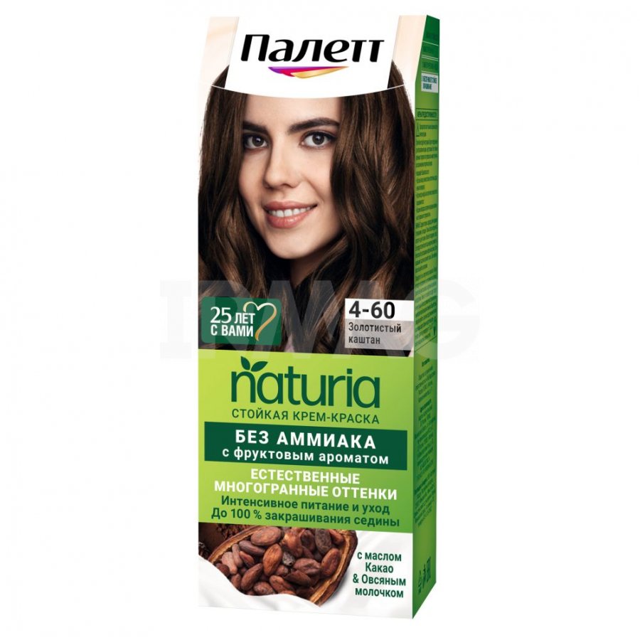Крем-краска для волос Палетт Naturia, без аммиака (50 мл) - 4-60 Золотистый каштан